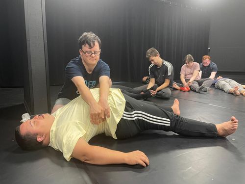 En pleine création de son spectacle « Nous quartier libre », la metteuse en scène Virginie Marouzé fait appel à des conseillers artistiques qui proposent aux comédien·nes en situation de handicap mental et psychique de sa compagnie d’aborder certaines scènes avec un regard neuf. Clément Papachristou et Edouardo della Faille se sont prêtés au jeu. Retour d’expérience.